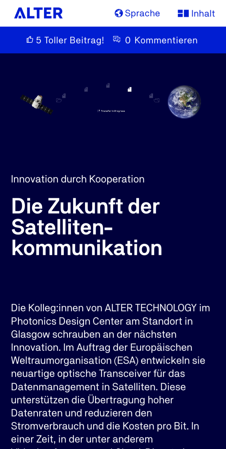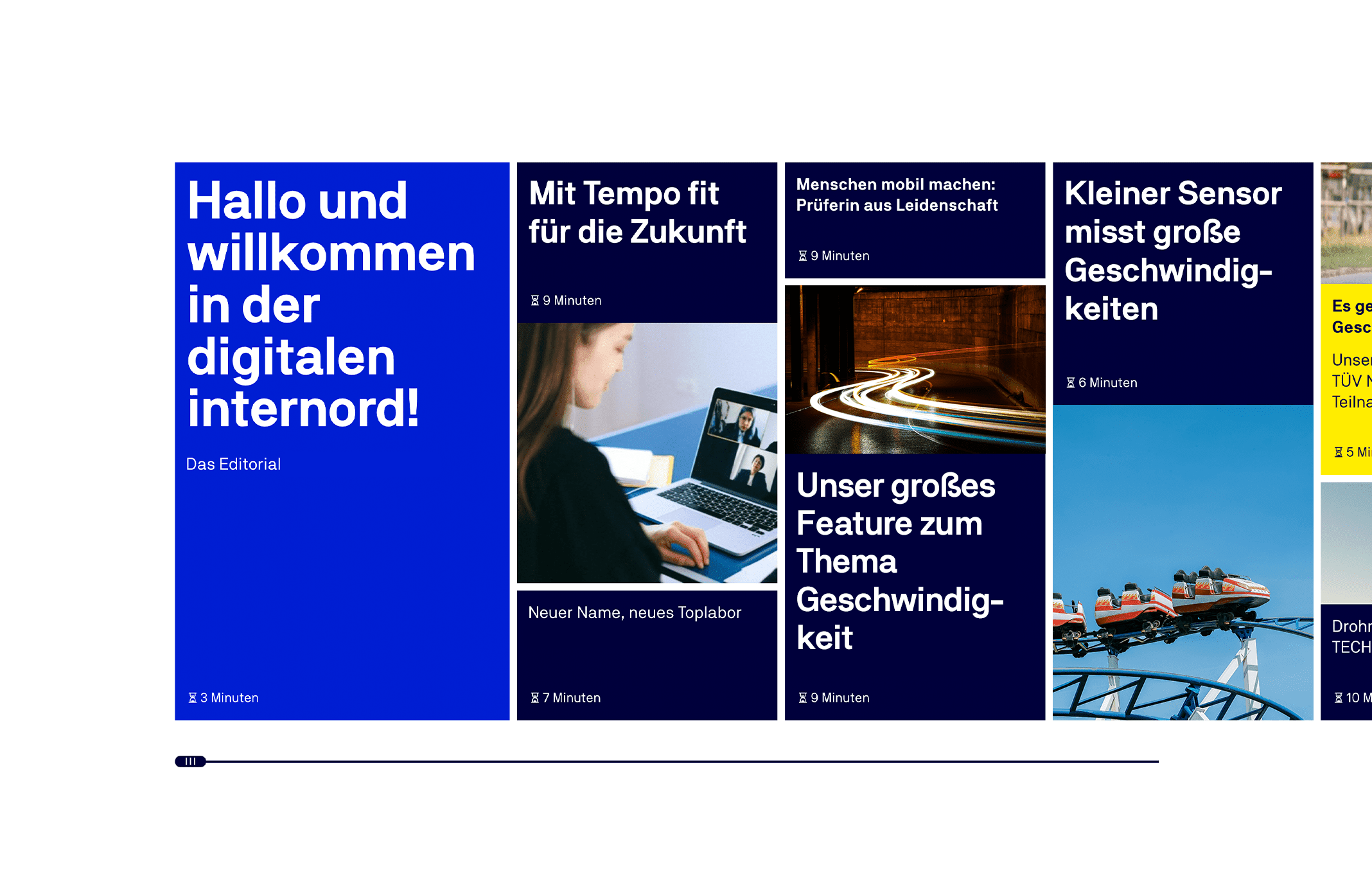 Das digitale Magazin für Mitarbeitende wurde in enger Abstimmung mit der TÜV NORD GROUP und seiner Leadagentur parallel mit dem neuen Corporate Design des Unternehmens entwickelt und gelauncht. Das klare Layout und die neuen Farben des Corporate Designs geben dem Magazin ein modernes und professionelles Look & Feel.