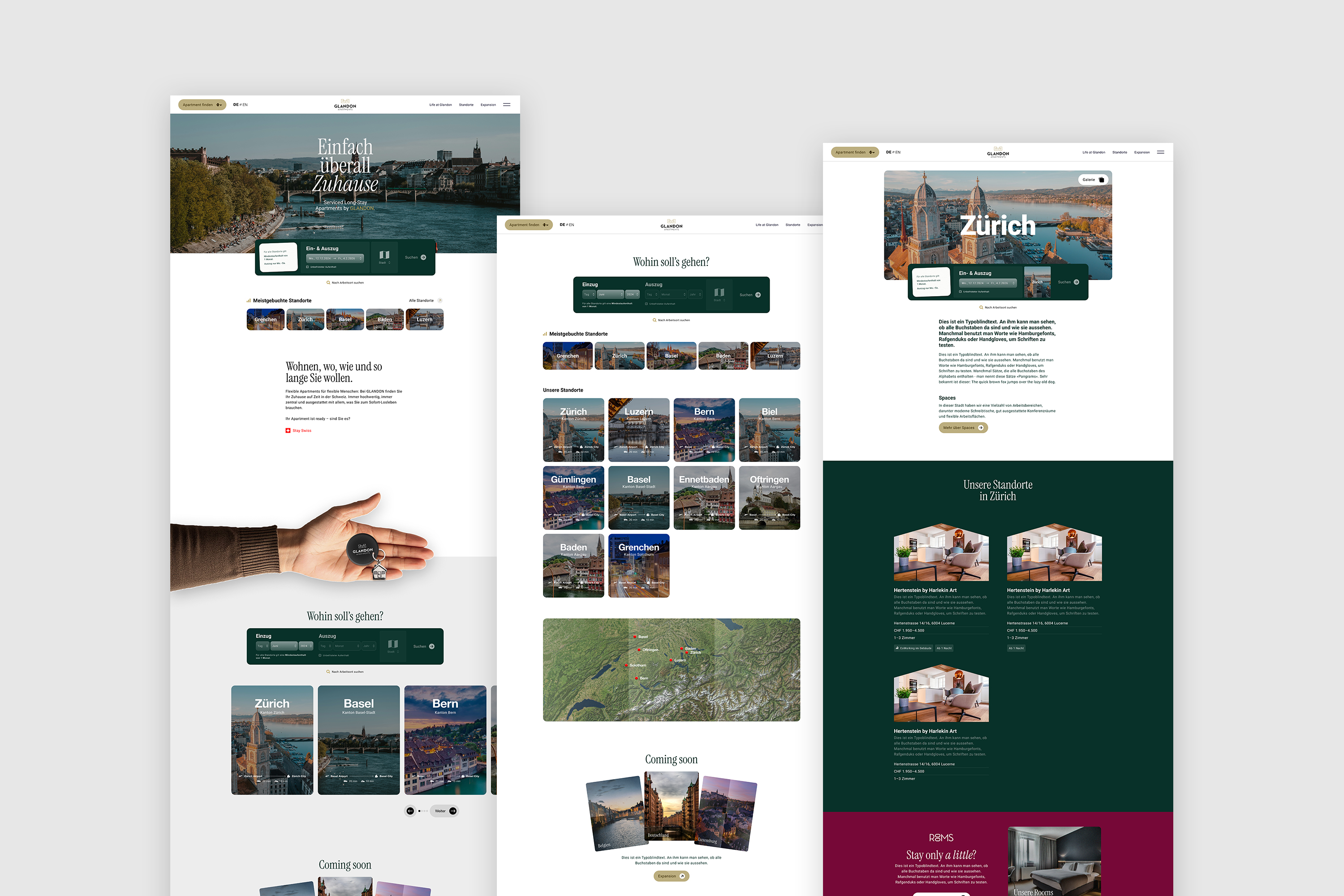 Aus dem geplanten Redesign entstand ein viel umfassenderes Projekt. Neue Ideen wurden direkt mitgedacht – wie GLANDON ROOMS, ein Angebot für Kurzzeitmieten mit digitalem, kontaktlosem Check-in. Ideal für alle, die für wenige Tage eine verlässliche Unterkunft suchen. GLANDON ROOMS wurde als Submarke mit eigenem Stil entwickelt, bleibt aber klar Teil der GLANDON-Familie.
