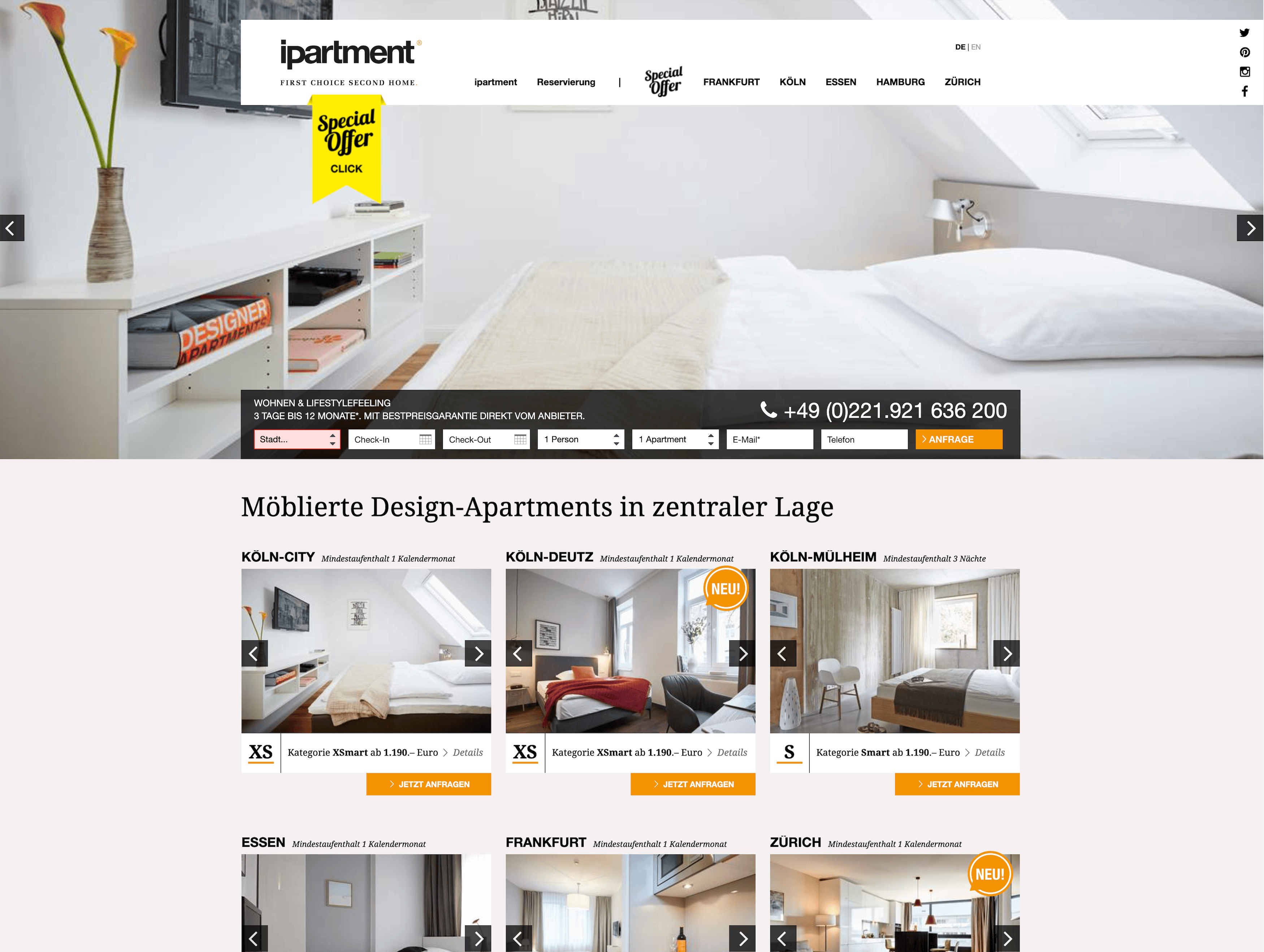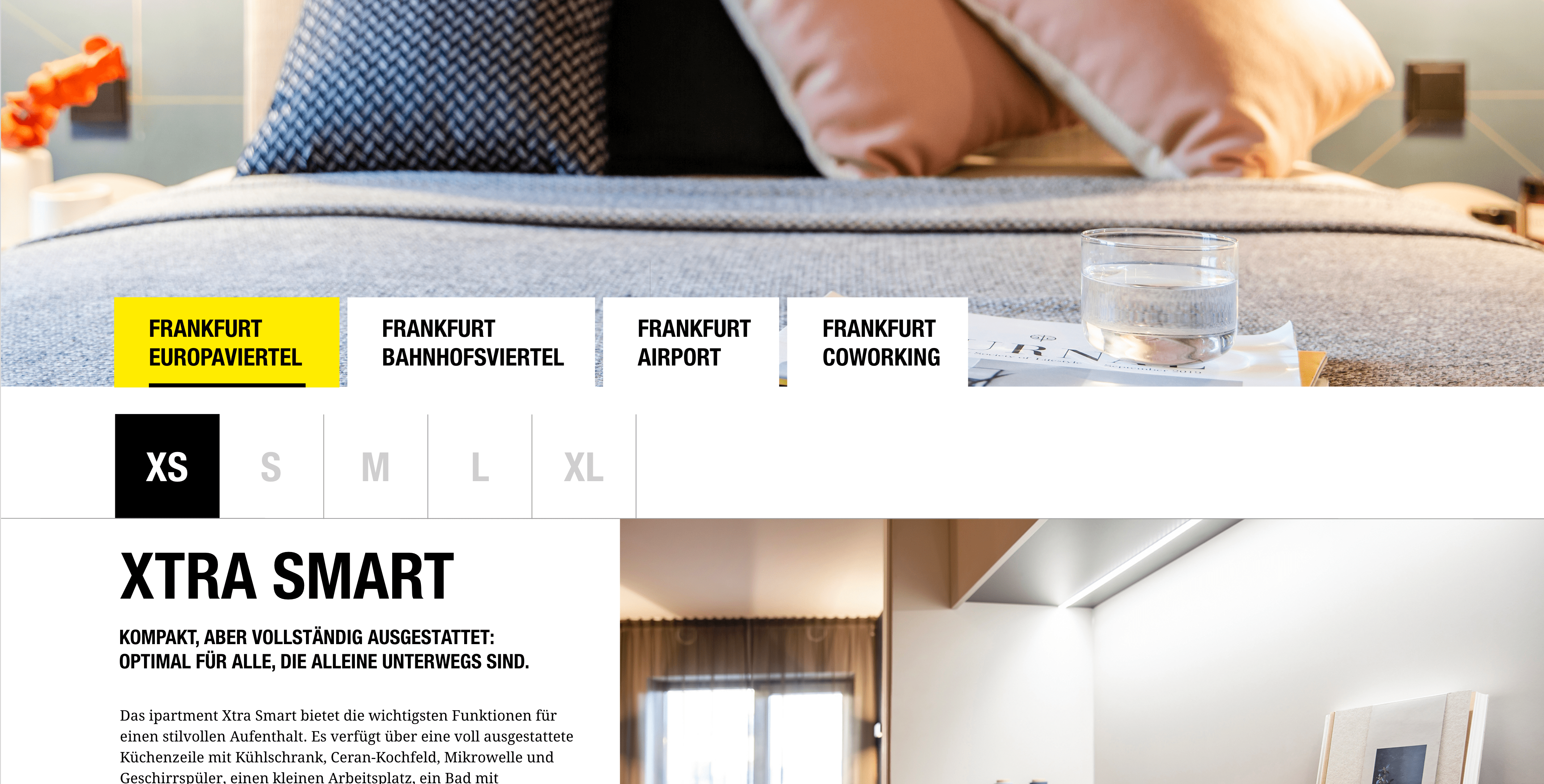 Das Ergebnis ist ein aufgeräumtes Flatdesign mit klarer Navigation. Nutzer können jetzt mühelos zwischen Standorten oder Apartmentgrößen wechseln – schnell, intuitiv und mit wenigen Klicks.